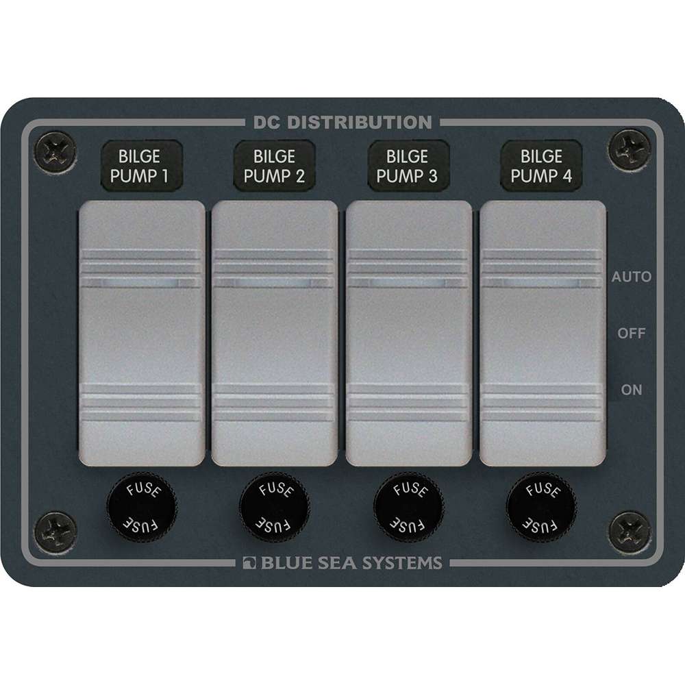 Blue Sea Systems water resistant 12/24 Volt DC Bilge Pump control panel with Contura rocker switch and fuse holder for fuses up to 20amp