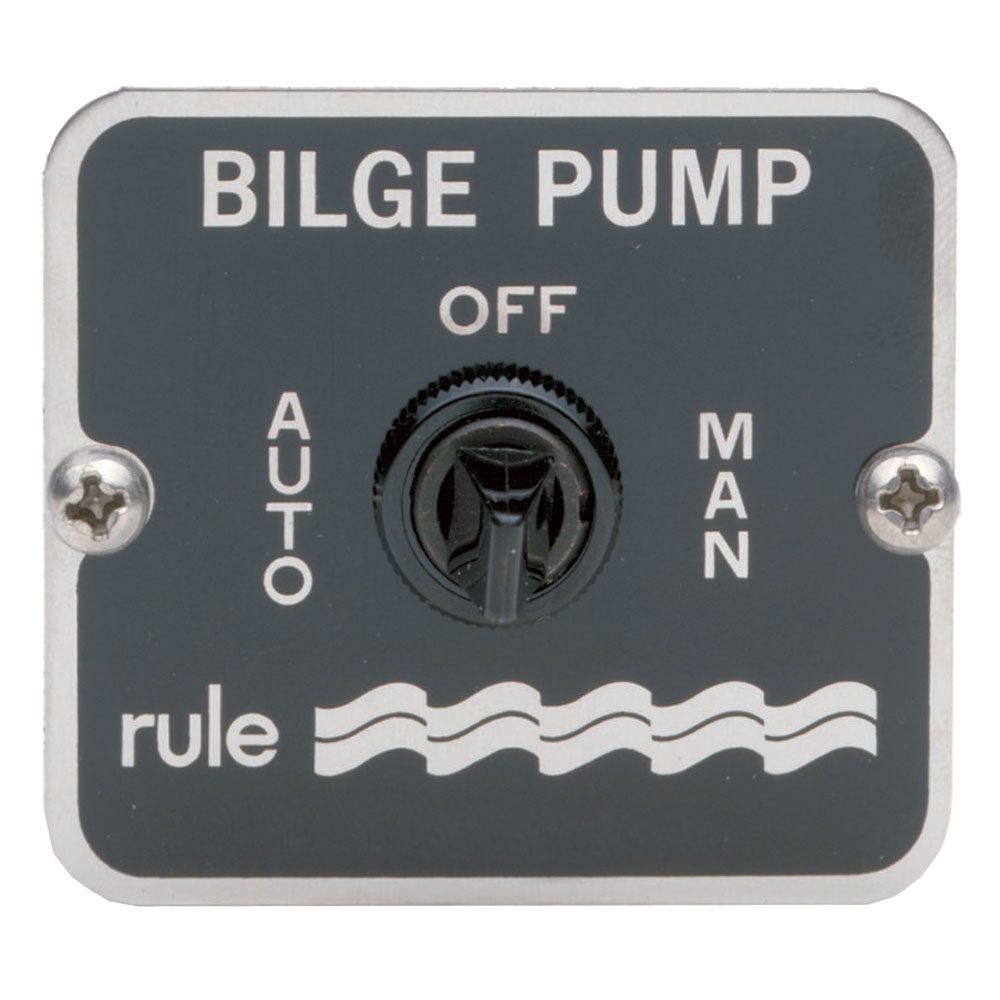 Similar to the Lighted Panel Switch but without indicator light or fuse holder. The “manual” position has a “fail-safe” spring return to “off” so you can’t leave your pump running by accident. Black stainless steel panel.